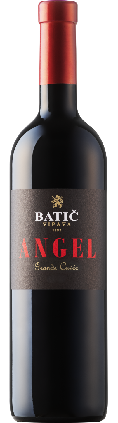 Angel Red (Red) is a Bordeaux variety of Merlot and Cabernet Sauvignon in harmony with Vipava. The body of the wine is Merlot, while Cabernet Sauvignon provides the elegance of the grape. The Šmihel Livišče Merlot harvest took place October 2, the Cabernet Sauvignon Vogrsko Mali Dunaj on October 13. The wines are vinified separately. The destemmed Merlot was left in contact with the skins for 21 days, Cabernet Sauvignon for 15 days. The wine was matured in 225 litre oak barrels for 25 months. The Angel Red was bottled in time of the waning moon.