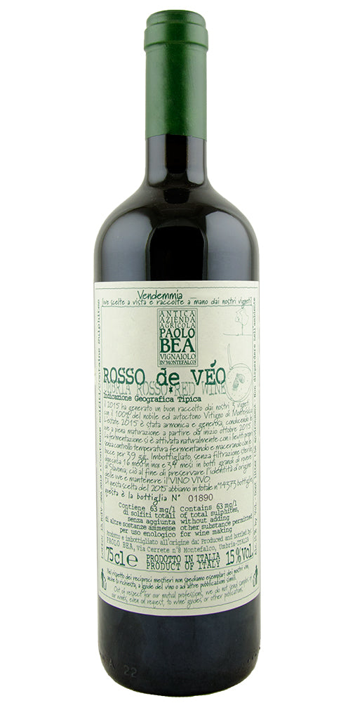 Importer Notes: “Rosso de Véo” is a selection of the Bea estate’s younger Sagrantino vines, principally from the Cerrete vineyard which graces the highest point in Montefalco, between 1300 and 1500 feet above sea level. The soil is clay and limestone infused with small pebbles from an ancient riverbed. This wine is vinified in a similar fashion to the single vineyard Sagrantino with a long cuvaison which extends forty to fifty days. The wine is then aged one year in stainless steel tanks, two years in large oak barrels and another year in bottle before release. The wine is not filtered.